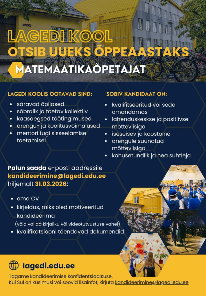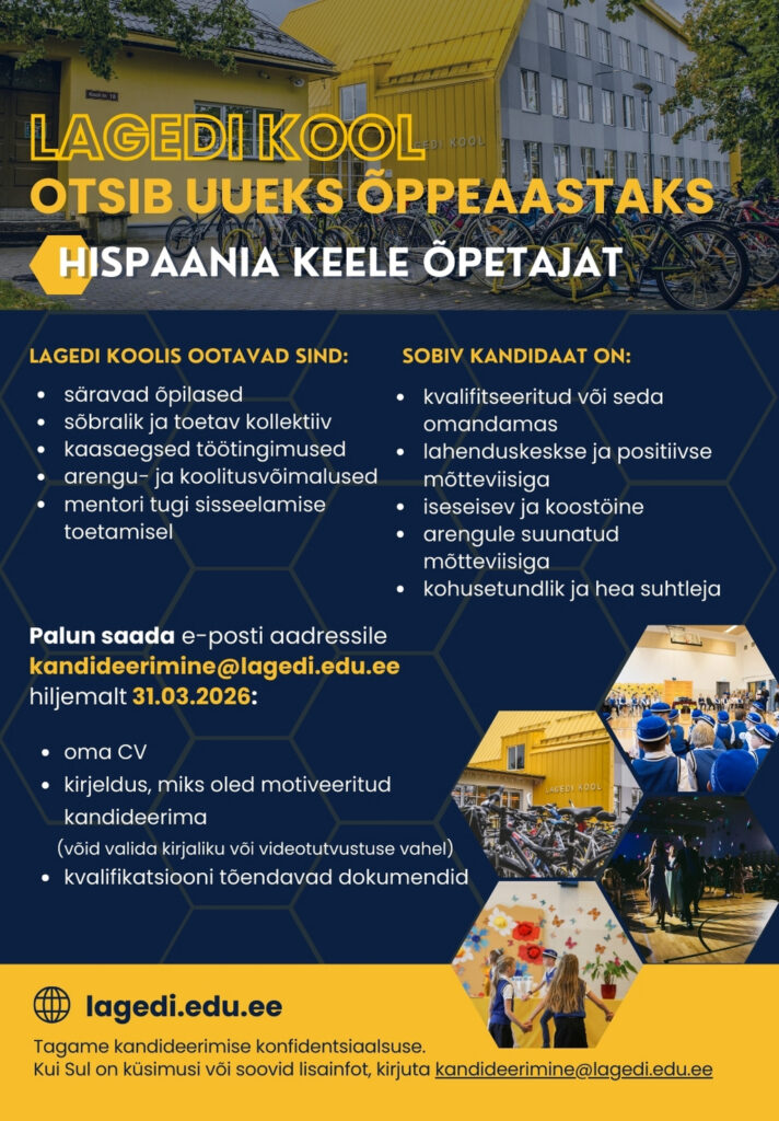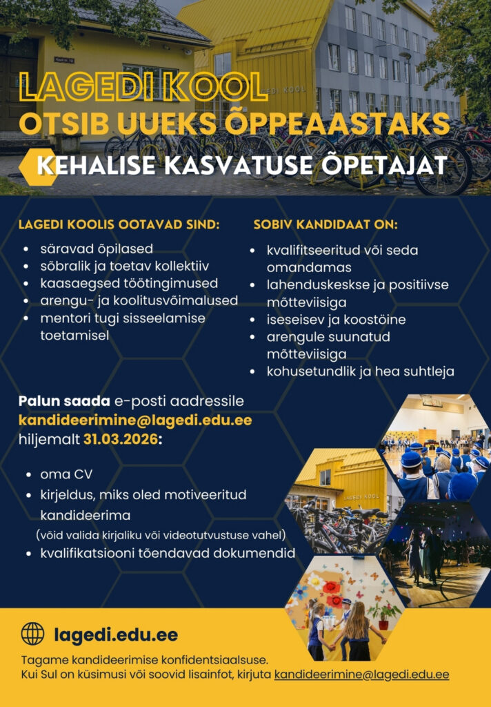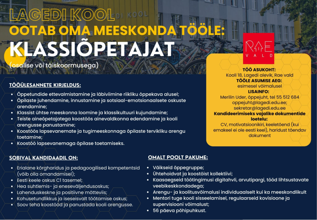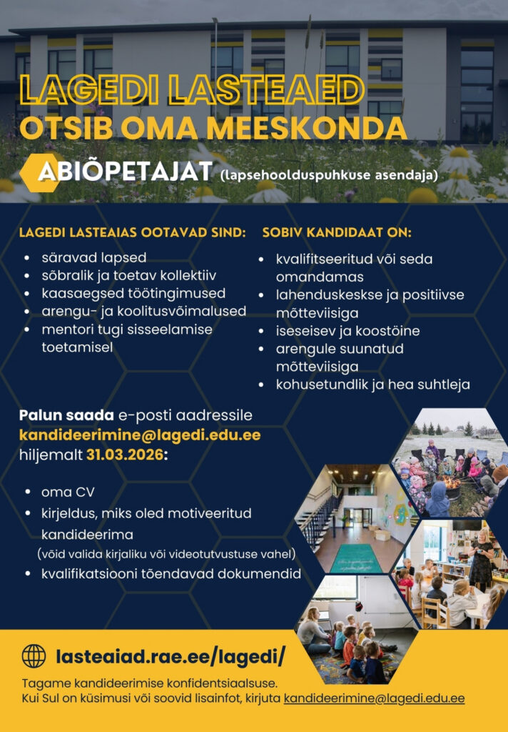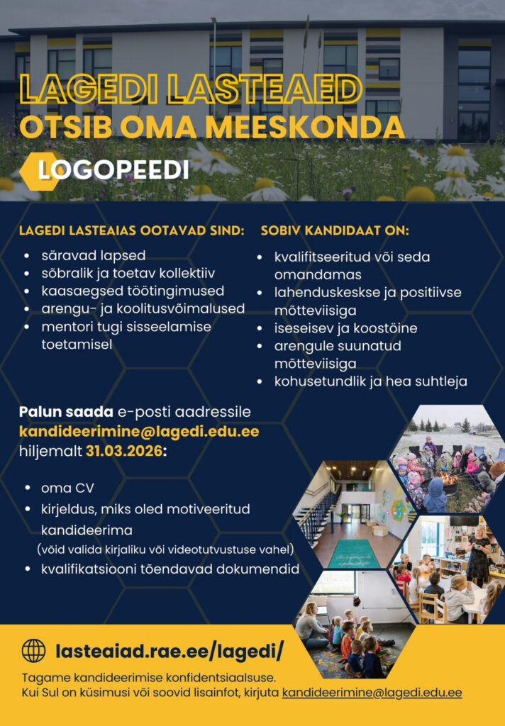 VABAD AMETIKOHAD LAGEDI KOOLIS JA LASTEAIAS Kandideerimiseks vajalike dokumentide loetelu: CV motivatsioonikiri haridusttõendav dokument keeleoskuse tase (kui emakeel ei ole eesti keel) cv.ee tööportaal (Lagedi Kool) LOGOPEED KLASSIÕPETAJA LOGOPEED LASTEAIAÕPETAJA
